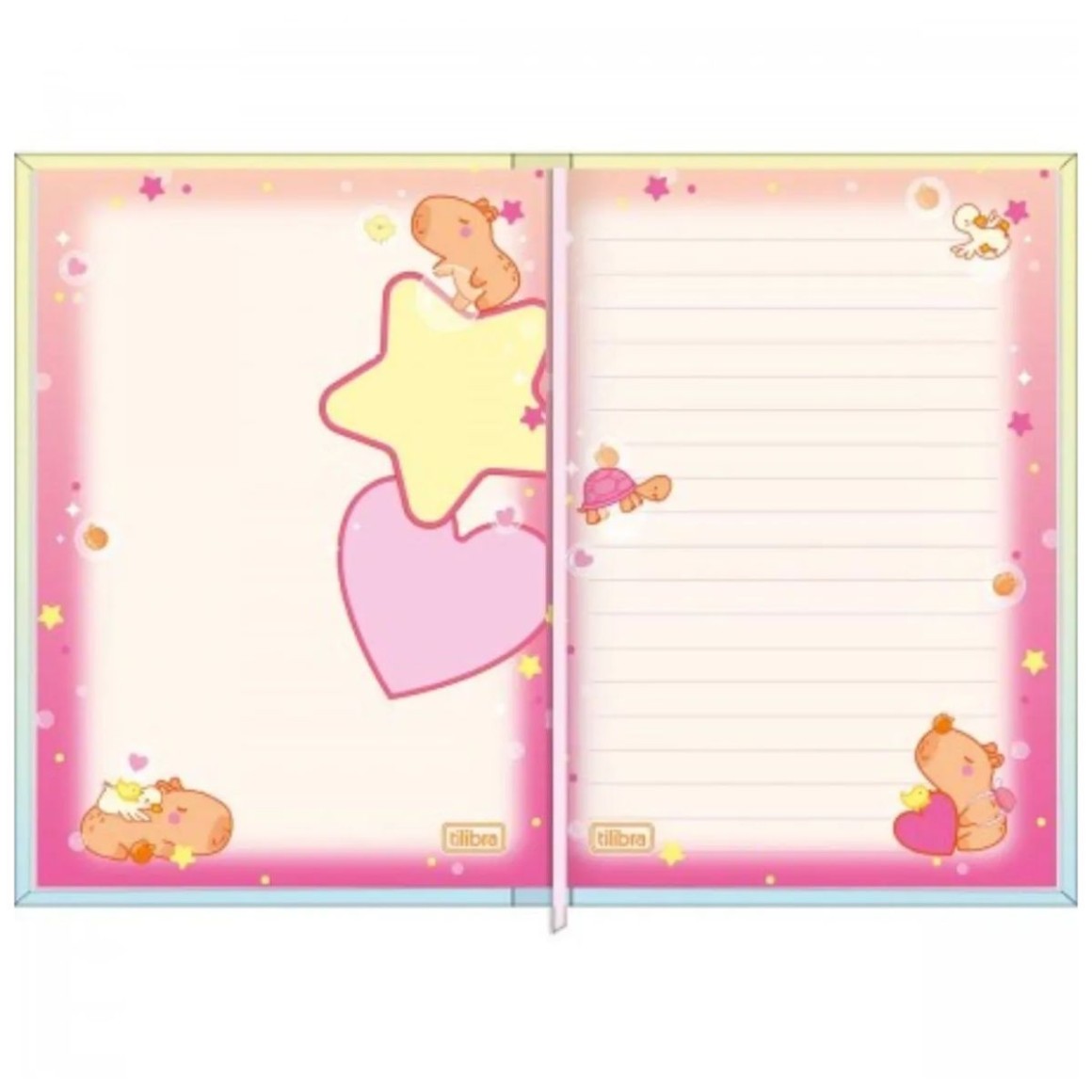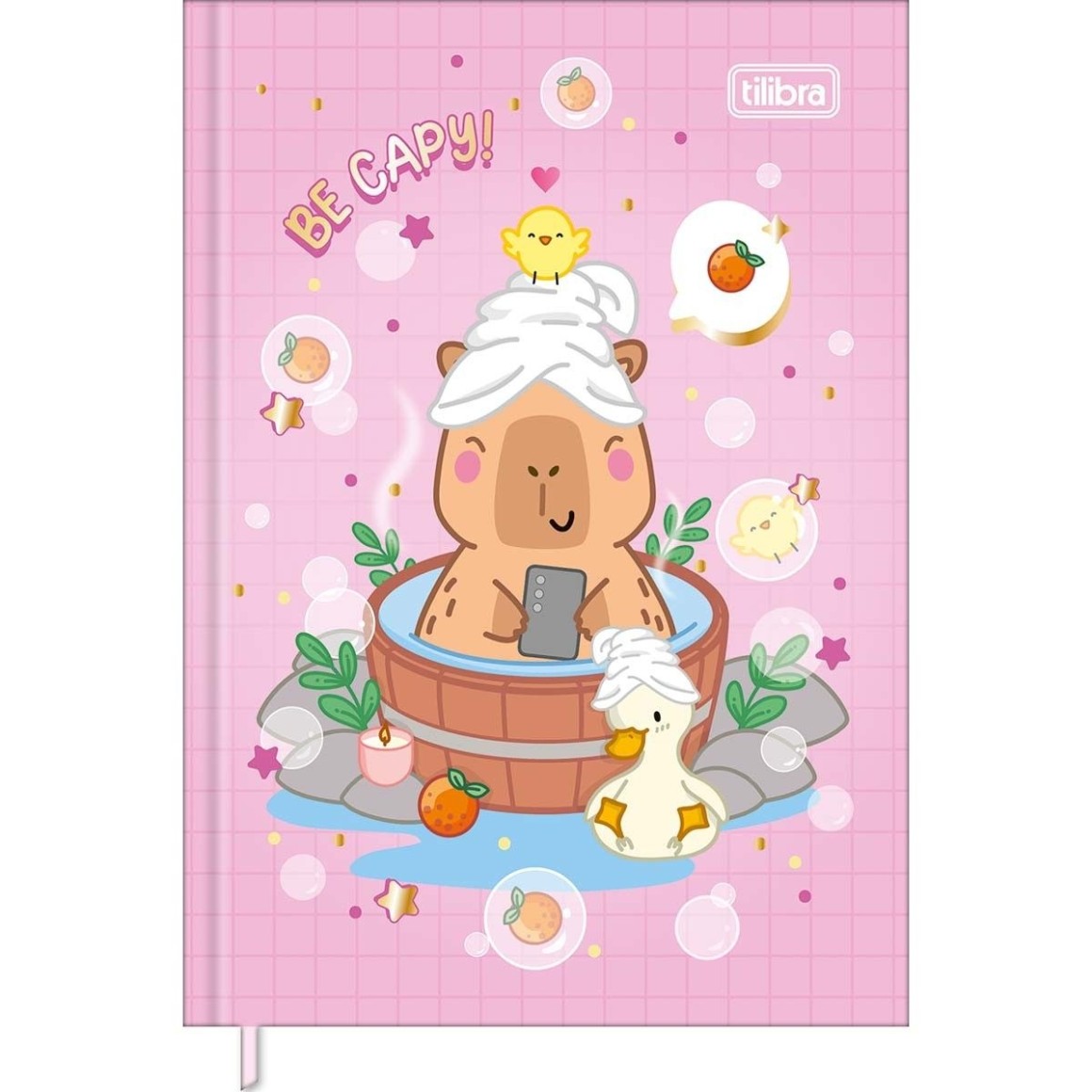 A Caderneta Costurada Petit Capyclub 96 Folhas tem estrutura especial, capa com espuma, acabamento metalizado e miolo com folhas decoradas.